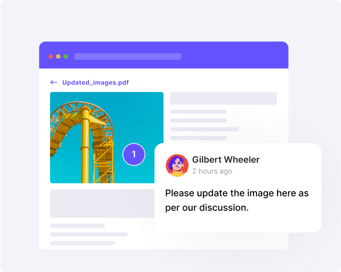 Share pixel-pinned contextual feedback directly on static images & PDFs.